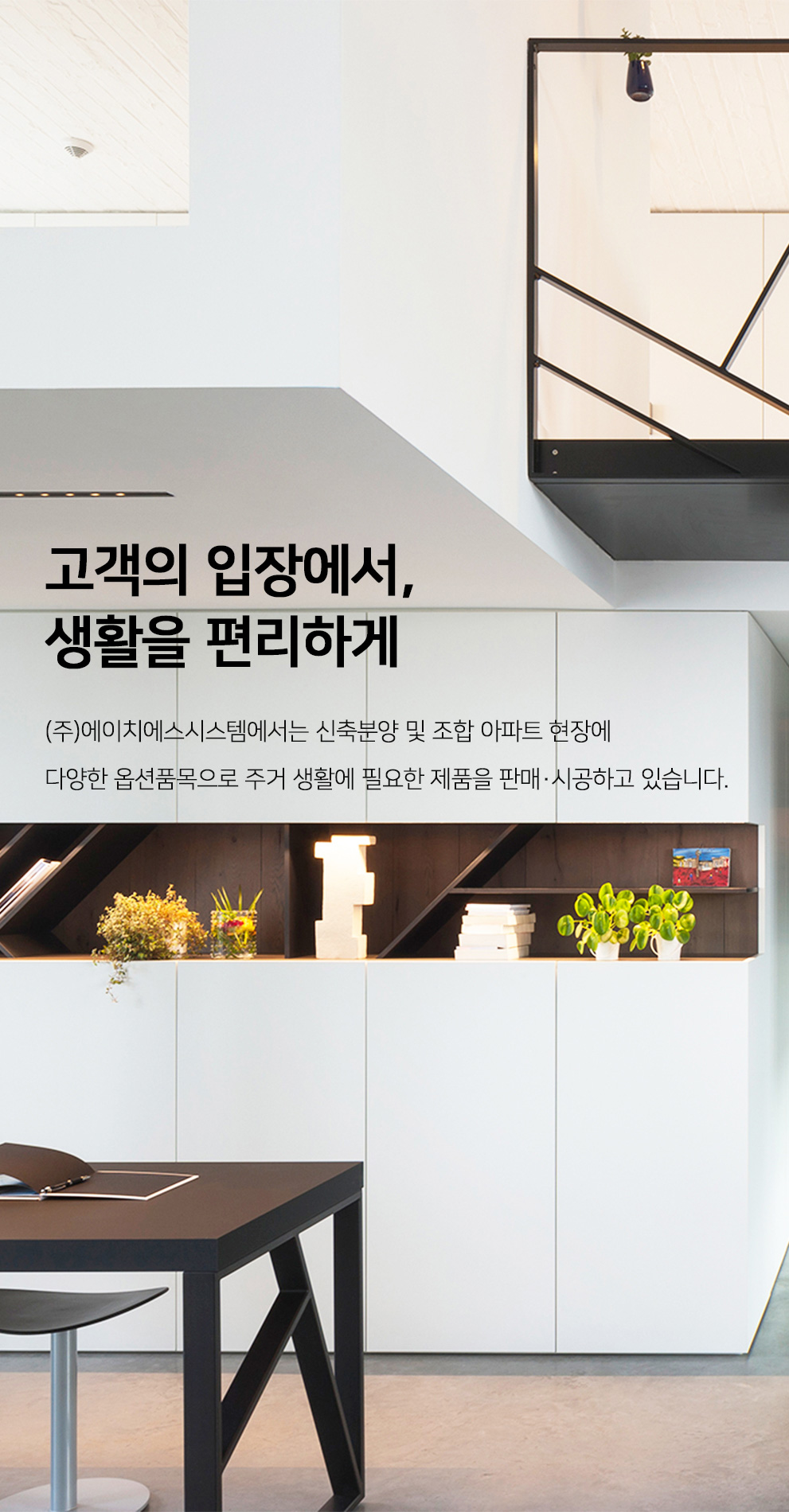 (주)에이치에스시스템에서는 아파트 주거 생활에 필요한 옵션을 판매 시공·관리 하고 있습니다.